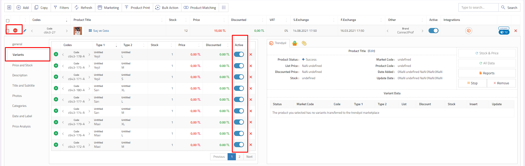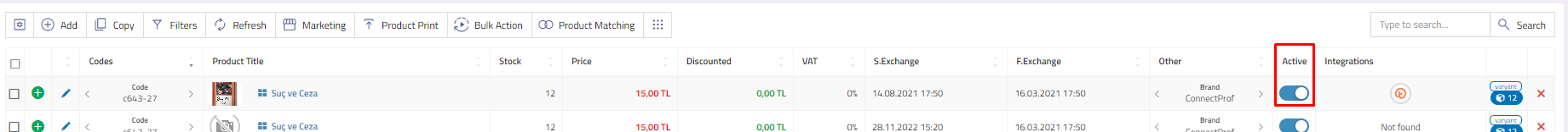 Your products will be listed. If you wish, you can change the activity status on sub-product basis or product basis.