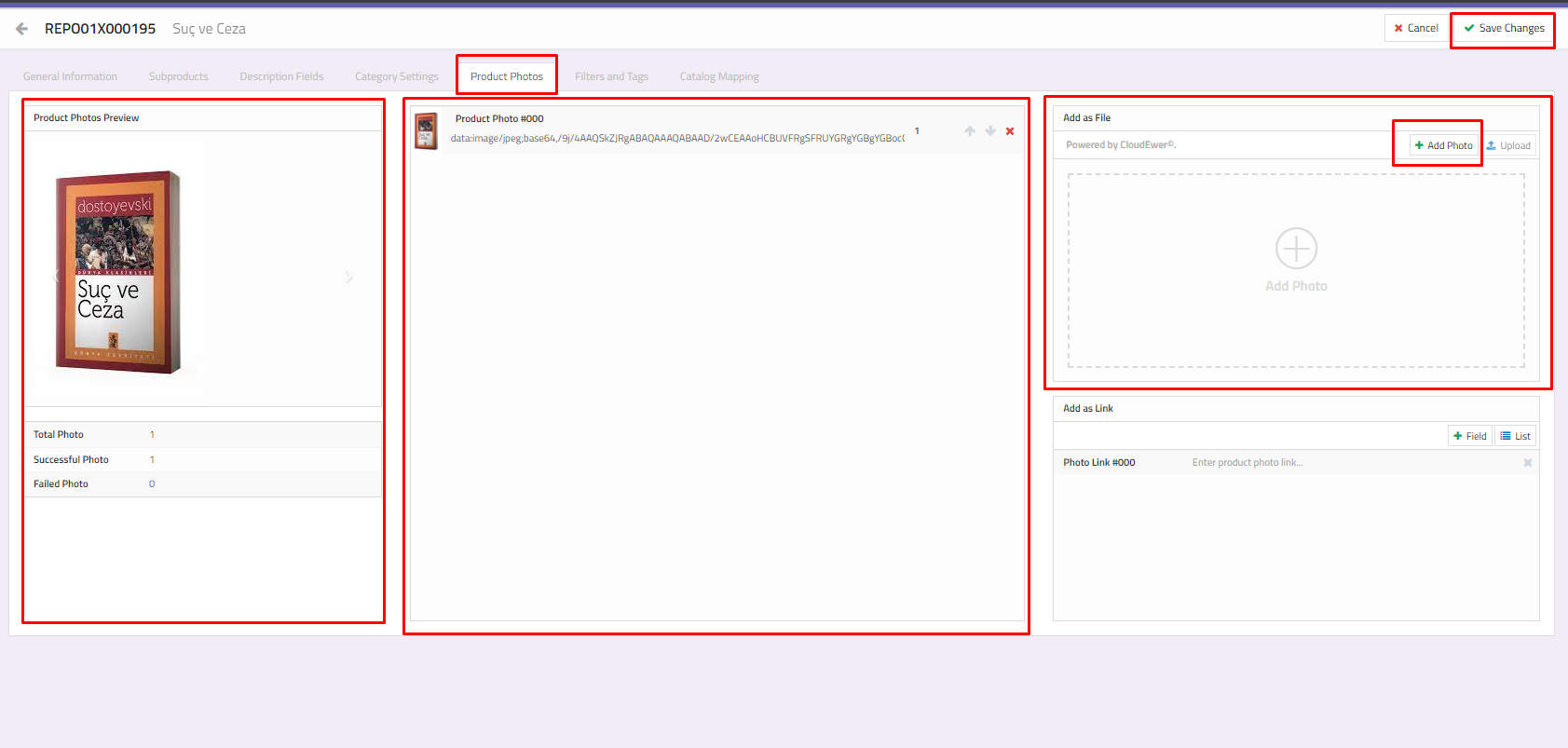 Product Photos Preview : It is the preview area of the photos you have added. You can review the total, successful and unsuccessful photo additions.