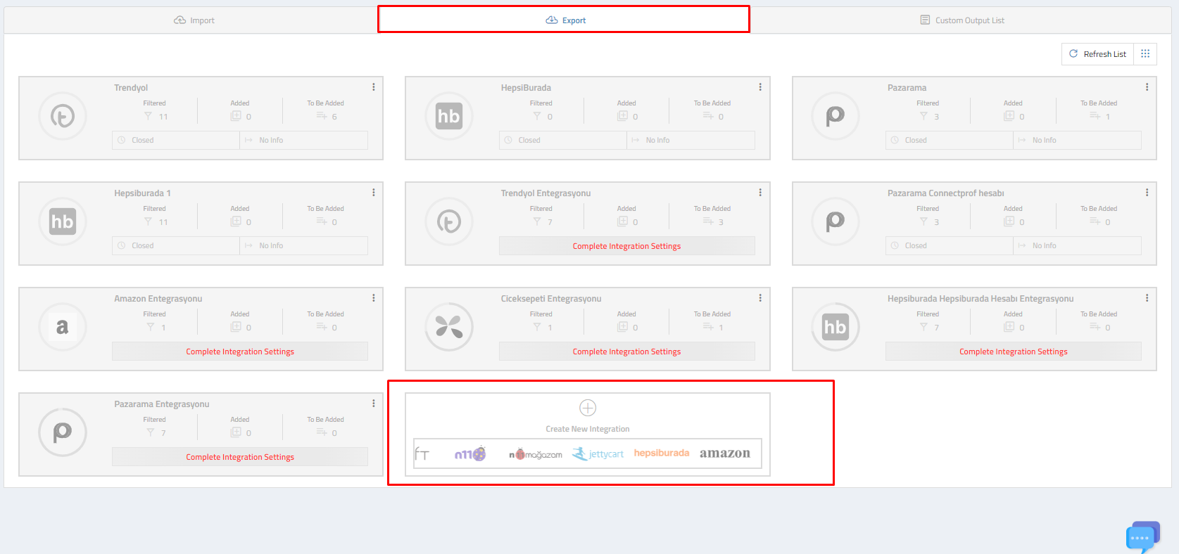 NOTE: When making external export integration settings, the added information will affect all your products. Therefore, you must add your settings correctly and completely.