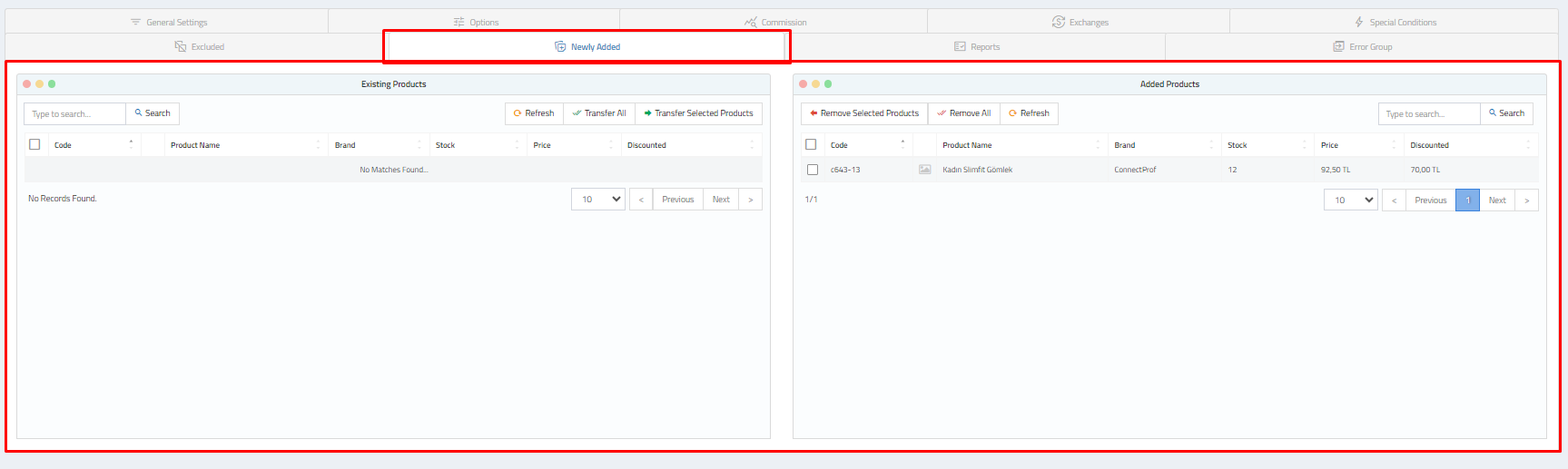 - Use the "New Additions" section to transfer selected products to ÇiçekSepeti.
