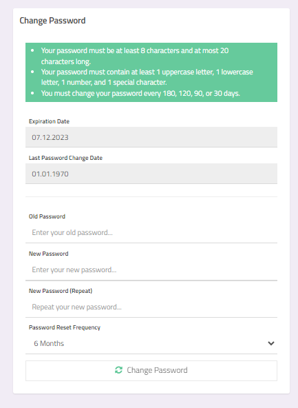 After adding your information, you can complete the password change process by clicking the "Change Password" button.