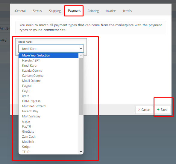 After this process, orders from the marketplace will be collected in your panel only as a payment method.