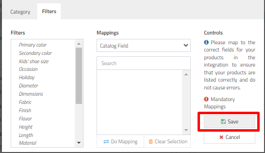 NOTE: If your filter fields are empty and you want to add filters when performing category mapping, you can review the articles "Add Ready Filter to Category, Add Special Filter to Category, Copy Filter from Another Category to Category."