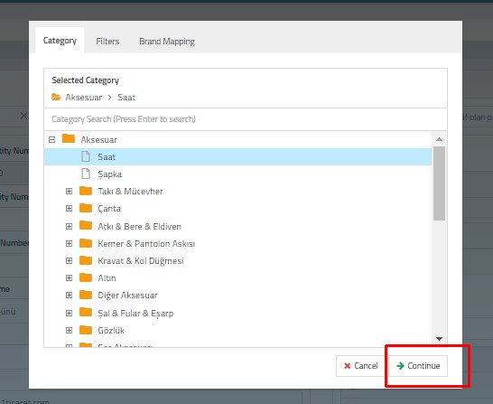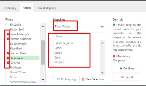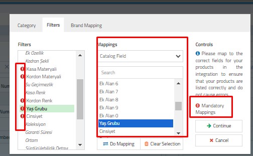 After completing the category mapping process, you can map your filters.