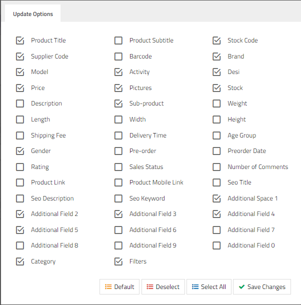 You can mark the selection of the product information you want to be updated in the panel from this field.