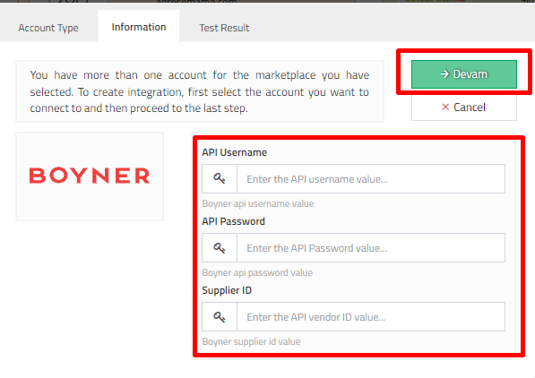 If you want to set up Boyner integration with ConnectProf, here are the steps you need to follow: