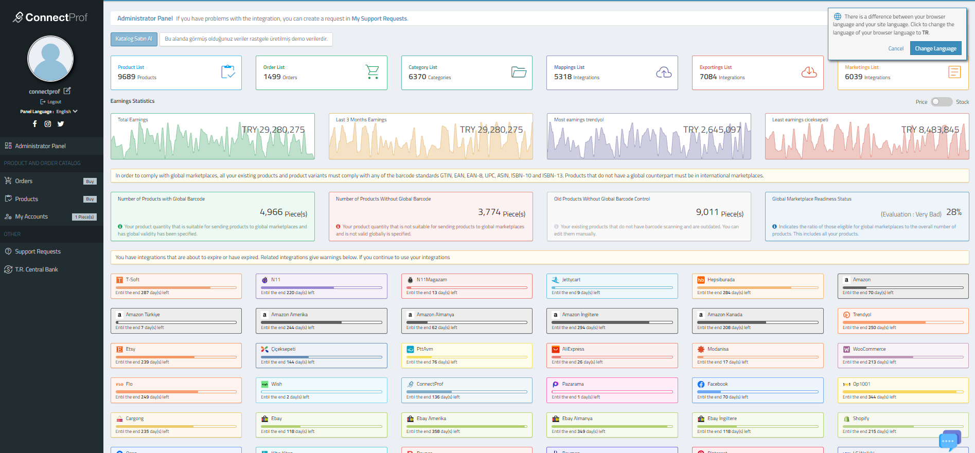 Connectprof is a platform where companies selling in the digital environment, products, orders and advertisements can be managed through a single panel.